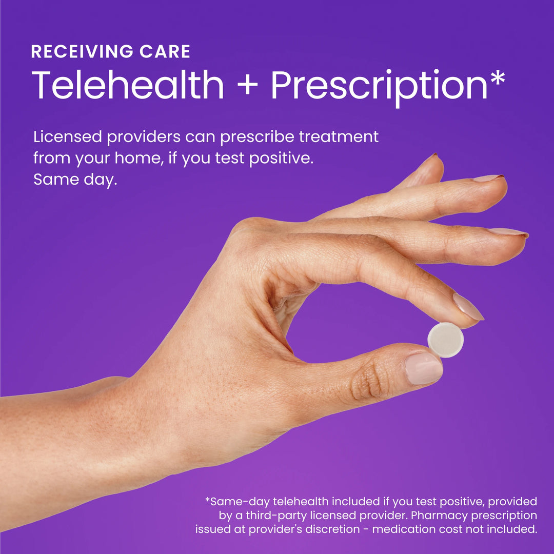 Connect with a licensed telehealth provider.* Positive? A licensed healthcare provider consult is included; prescription sent to your pharmacy.